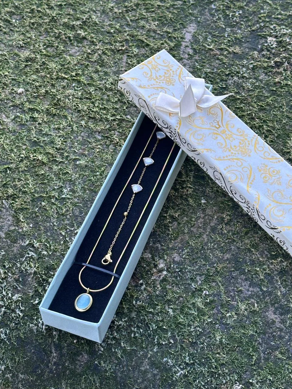 Image Caption💎 Pack complet : collier + bracelet blanc 💎 Pierre couleur bleu ciel délicate et lumineuse 💎 Design chic et moderne 💎 Idéal pour compléter votre look ou offrir en cadeauUn ensemble de bijoux unique qui ajoute une touche de fraîcheur et d’élégance à votre tenue. 💙✨